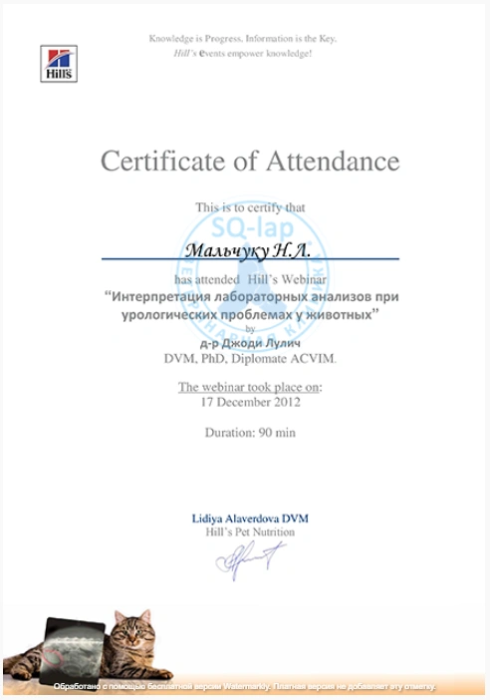 Мальчук Н.Л. - Лабораторные анализы при урологических проблемах у животных